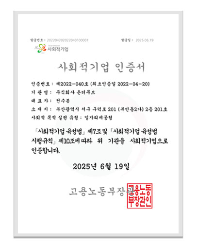 2022. 04. 사회적기업 인증 – 일자리제공형 [고용노동부]