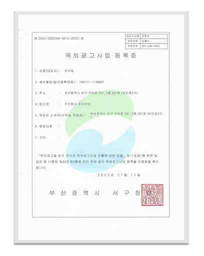 2024. 01. 옥외광고사업 등록증 – [서구청]
