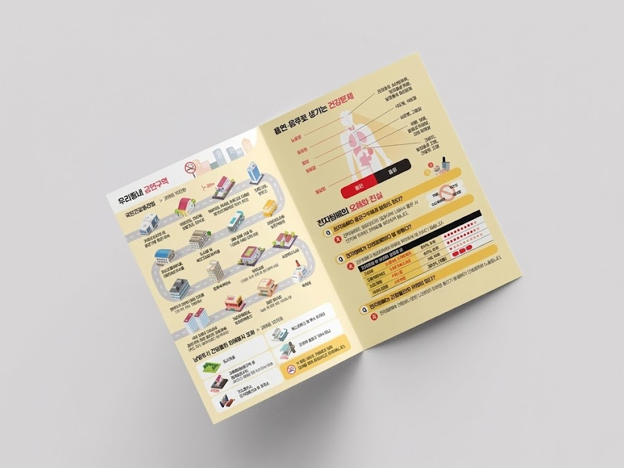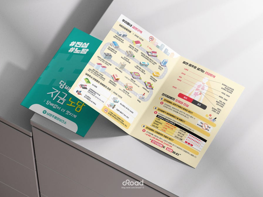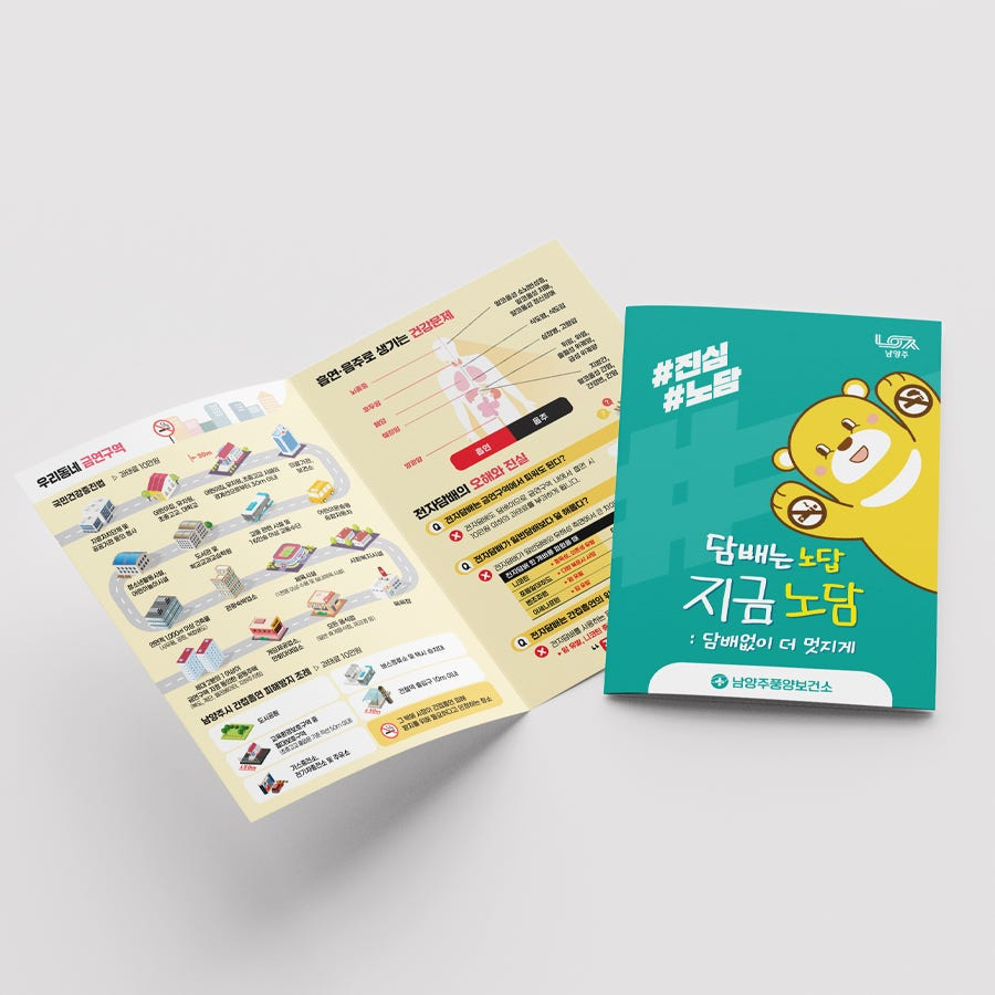 남양주풍양보건소는 지역 주민의 금연 실천을 돕기 위한 금연클리닉 홍보 리플릿 제작을 디로드에 의뢰하였다. 디로드는 보건소에서 제공한 레퍼런스를 기반으로 2단 리플릿 형태의 편집디자인을 진행하였으며, 공공 홍보물의 목적에 맞게 정보 전달력과 친근한 이미지를 동시에 고려해 디자인하였다.
