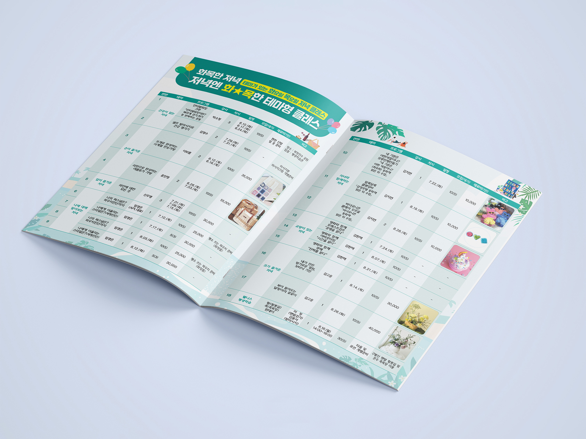 표지는 계절감을 반영해 생동감 있게 구성하고, 내지는 체계적이고 직관적인 편집으로 누구나 쉽게 필요한 정보를 찾을 수 있도록 구성하였다. 또한 직장인과 어르신 등 다양한 연령층을 고려한 맞춤형 프로그램 정보를 한눈에 확인할 수 있어 학습자들이 원하는 강좌를 쉽게 찾고 신청할 수 있도록 하였다.
