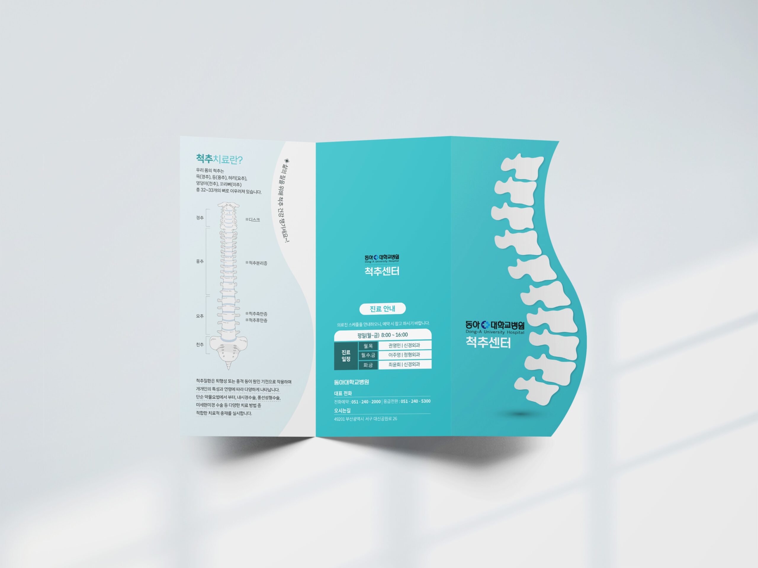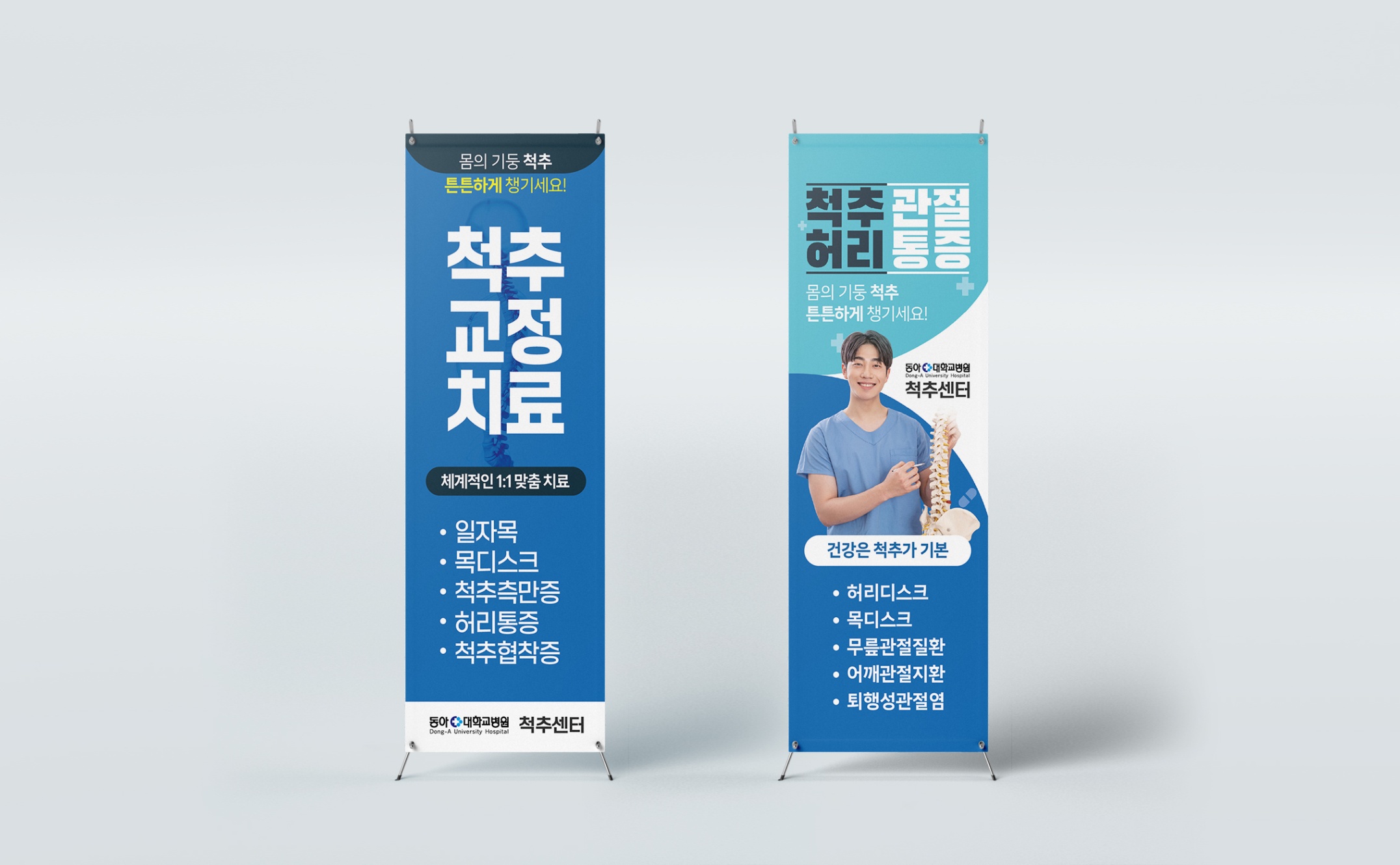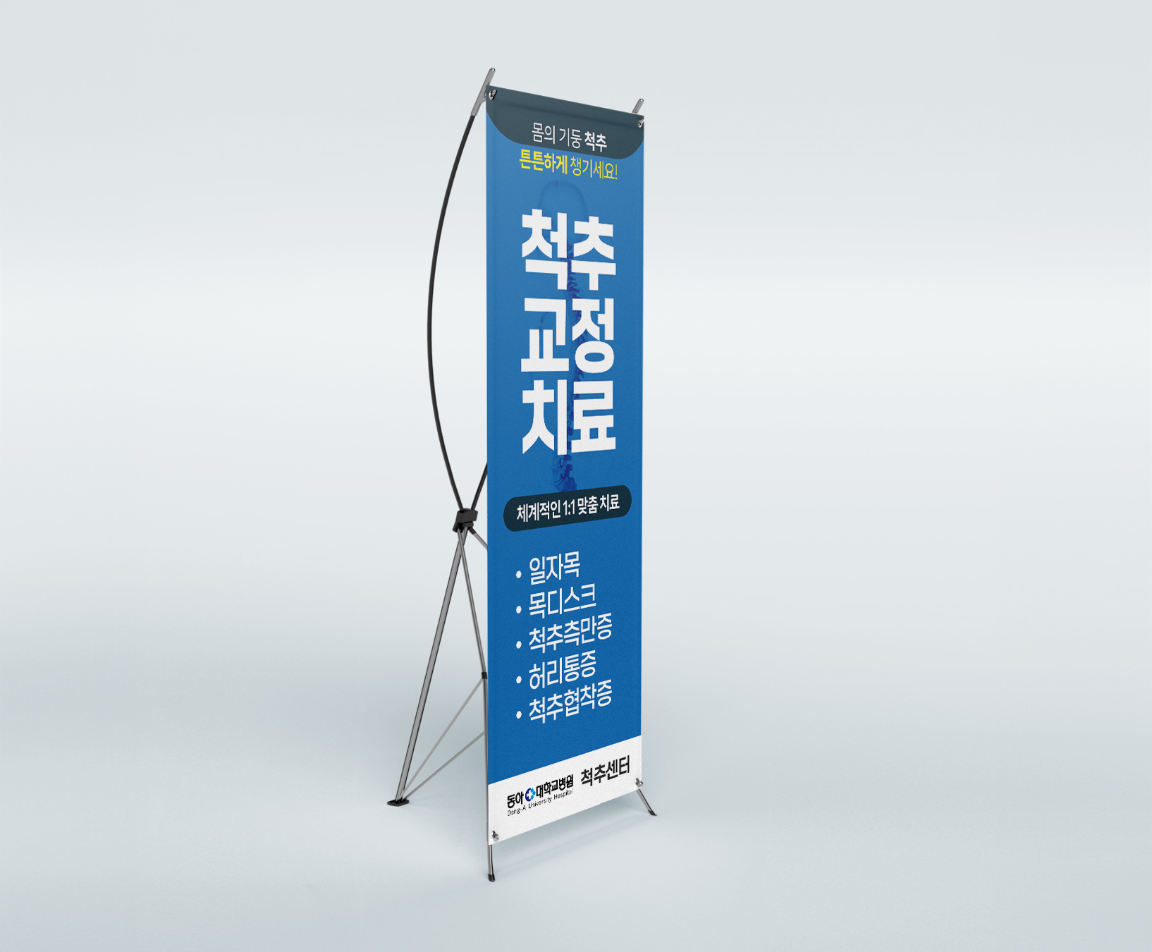 동아대학교병원 척추센터 3단 리플릿, X배너 샘플 제작