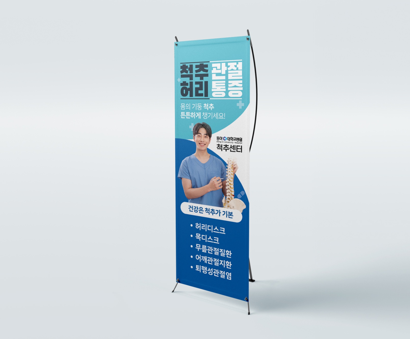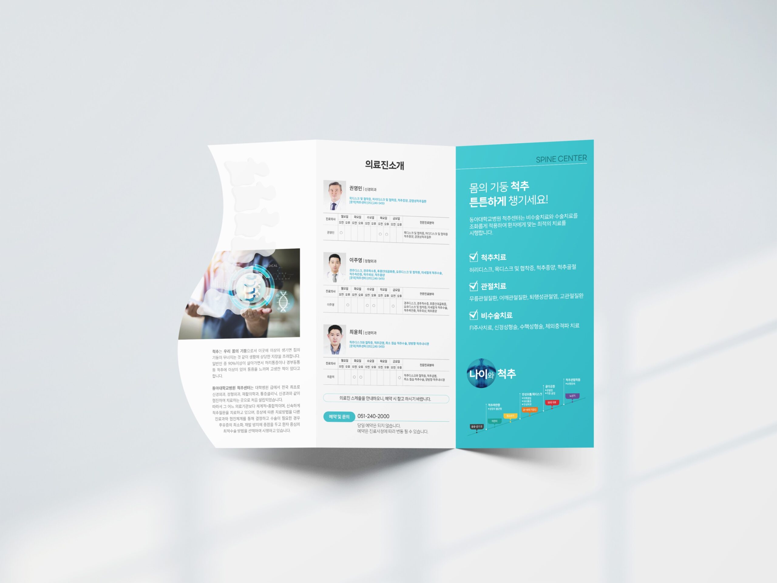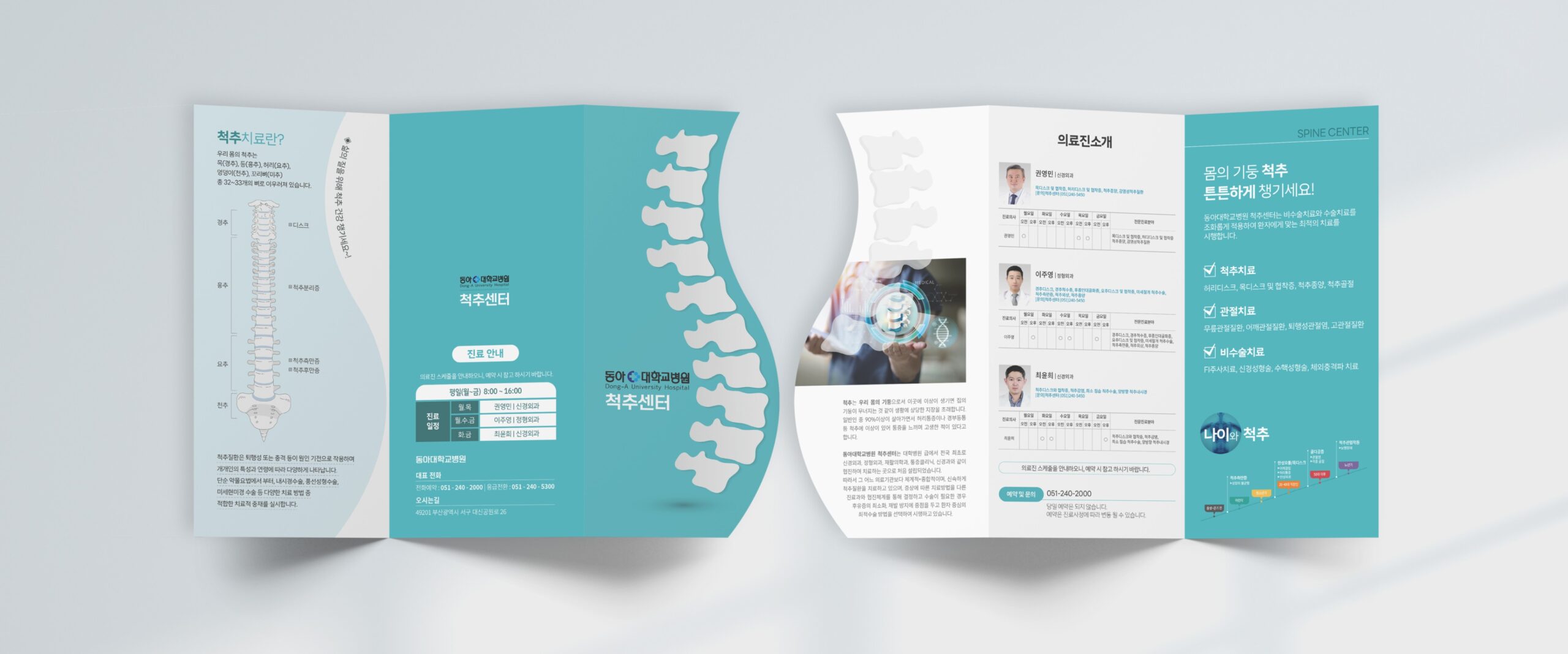 동아대학교병원 척추센터 3단 리플릿, X배너 샘플 제작