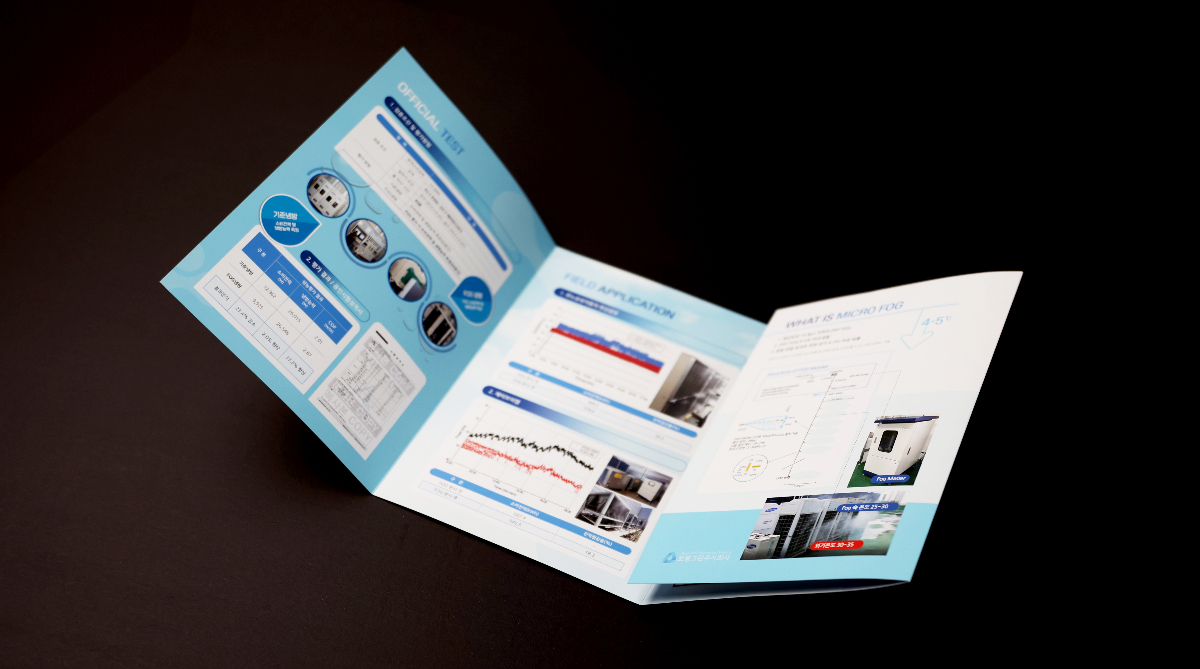 핵심기술인 ‘물의 분사’와 ‘에너지 절감’에 초점을 두고 색은 파란색 계열로 이미지는 하늘과 물방울의 형태를 접목하여 제작하였다.
