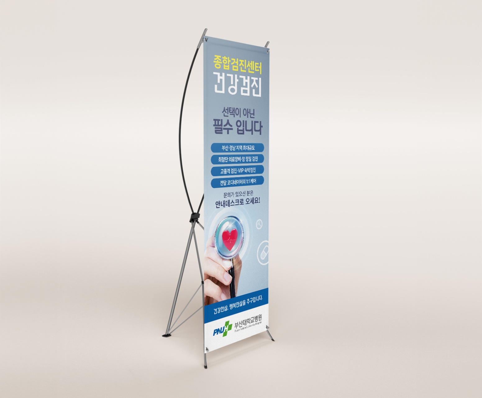 그리고 리플릿과 함께 병원을 찾아오는 분들이 조금 더 빠르게 정보를 전달받을 수 있도록 X-배너를 함께 제작해 보았다.