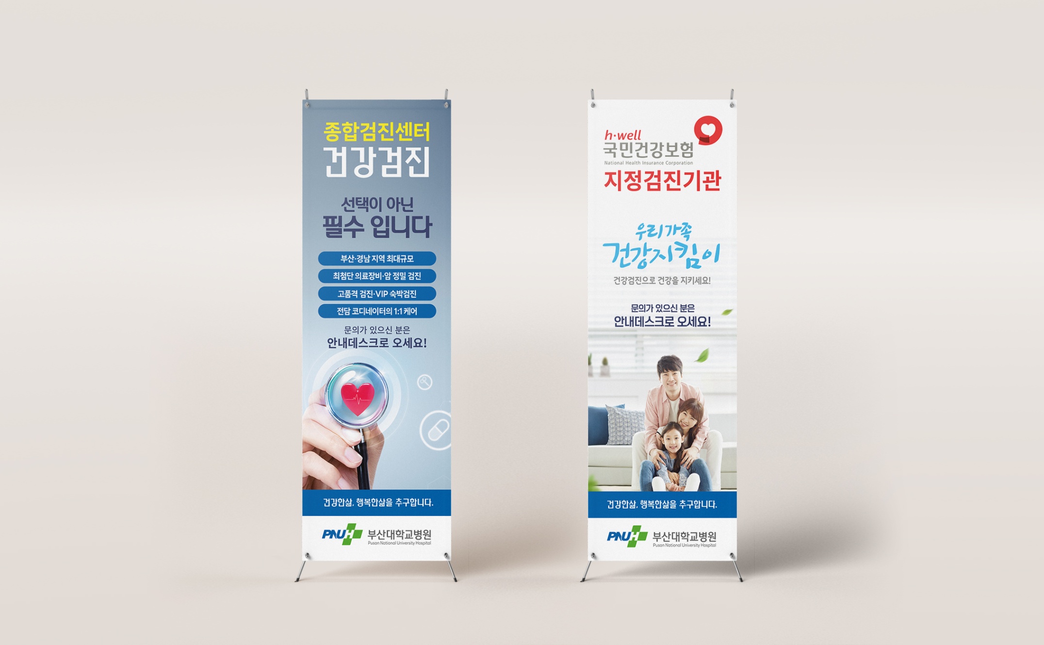 부산대학교병원 3단 리플릿, X배너 샘플 제작