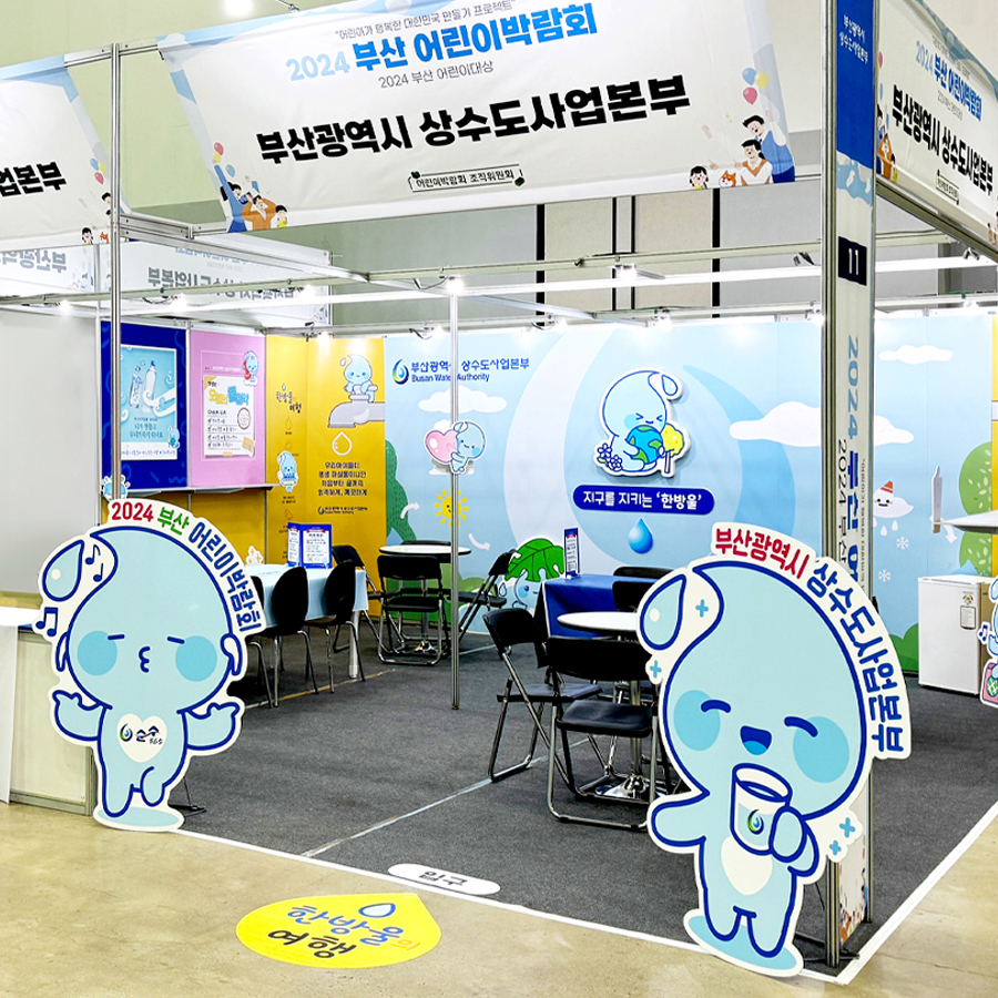 부산상수도사업본부는 2024 부산어린이박람회 참가를 위해 물 절약 인식 제고와 체험형 교육 콘텐츠 확산을 목적으로 박람회부스 디자인을 의뢰하였다.