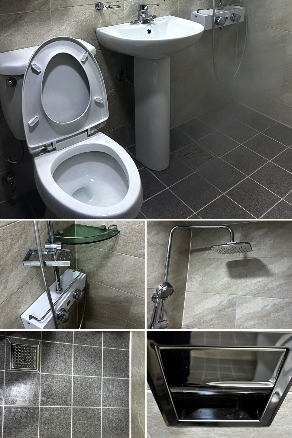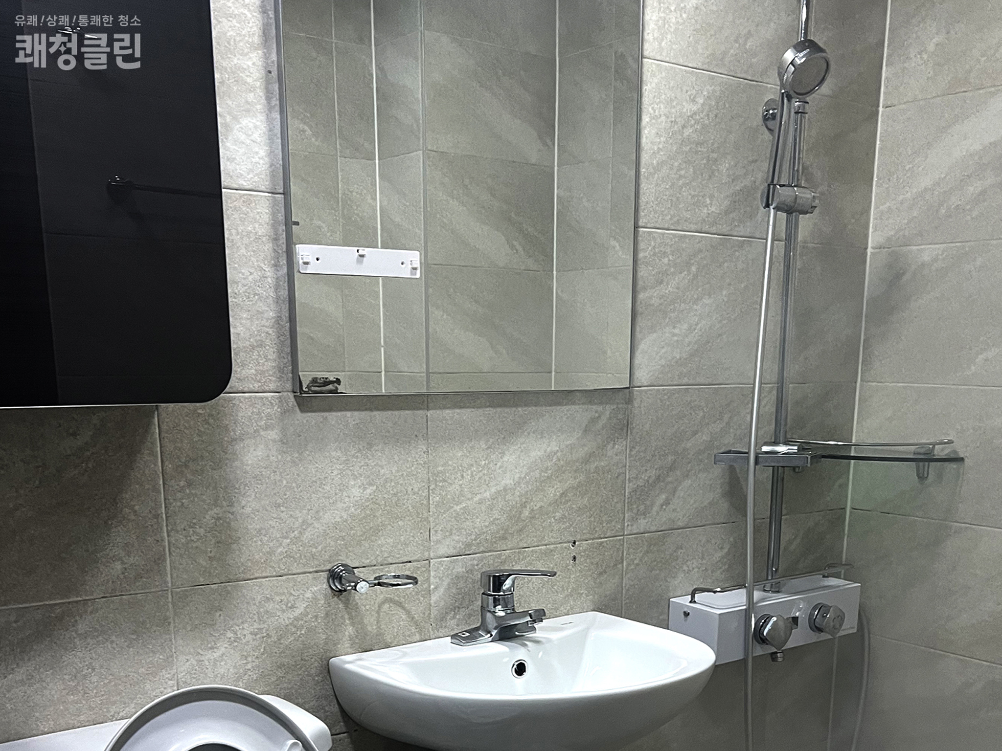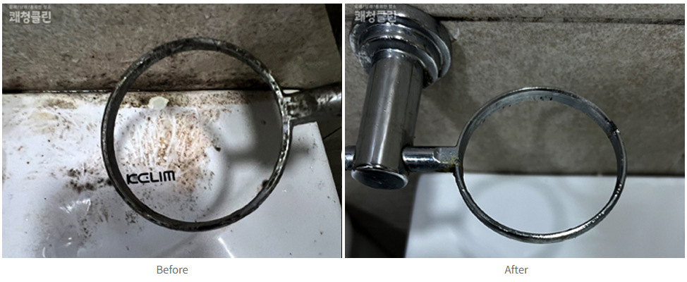 변기·세면대·거울·환풍구 등 탈거 가능한 부분은 모두 분리해 고압 스팀 세척과 친환경 세제를 활용해 꼼꼼하게 청소하였으며, 표면은 세정제를 도포 후 반복 세척하고 부드러운 천으로 물기까지 완벽하게 제거했습니다. 또한 곰팡이가 생길 수 있는 작은 틈새까지 놓치지 않고 꼼꼼하게 청소하였고 유리 표면에 흠집이나 손상은 남기지 않도록 유리 청소 전용 장비를 활용해 부드러우면서 꼼꼼하게 여러 차례 반복하여 남아있는 물때 곰팡이를 제거하였습니다.