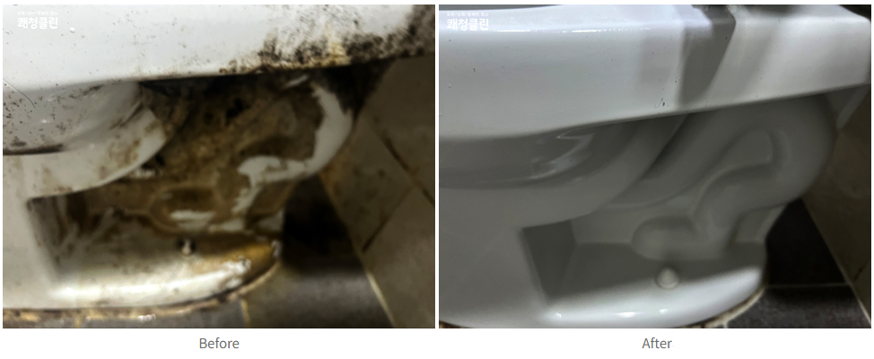 부산 수영구 광안트라움하우스 원룸은 장시간 청소가 이뤄지지 않은 탓에 물때·세정제 찌꺼기 등이 쌓이면서 전체적인 곰팡이 오염이 심각했습니다. 특히 변기 뒤편은 곰팡이와 각종 찌든 때 등의 오염은 생활 청소만으로는 깔끔하게 세척하기가 불가능한 수준이었습니다.