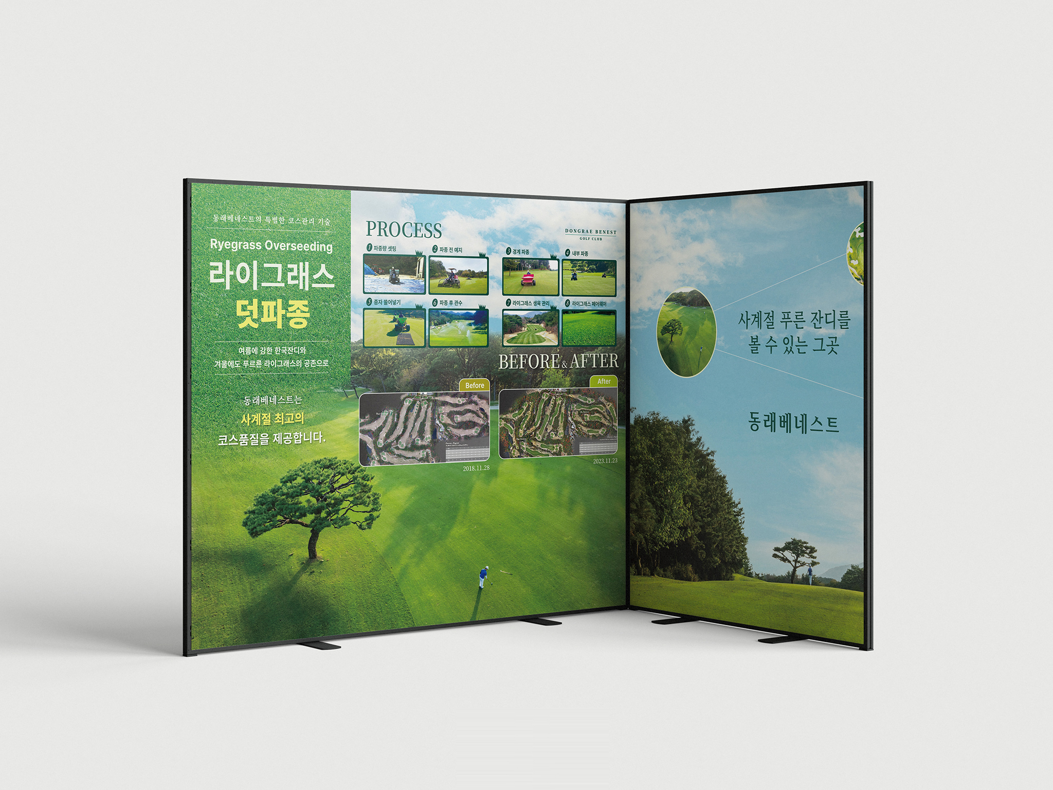 삼성물산은 ‘KLPGA 국내 개막전’에서 잔디 파종 관련 내용을 효과적으로 홍보하고자 야외용 몽골텐트 행사 부스 디자인을 디로드에 의뢰하였다.