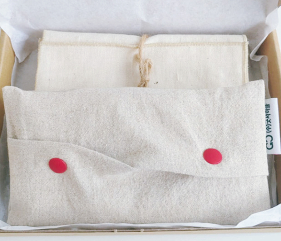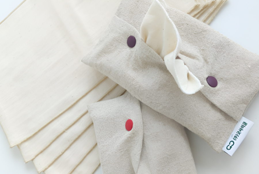 굿사이클 소창손수건은 일회용 위생용품 사용을 줄이고자 기획된 친환경 제품입니다. 100% 목화솜 무형광·무표백 소창 원단을 사용해 안전성과 위생성을 동시에 고려했으며, 자연 소재의 부드러운 촉감을 그대로 담아 일상에서 안심하고 사용할 수 있도록 제작되었습니다. 손수건과 디스펜서를 함께 구성해 보관과 사용의 편의성을 높였으며, 반복 세탁이 가능해 지속적인 사용이 가능한 것이 특징입니다.