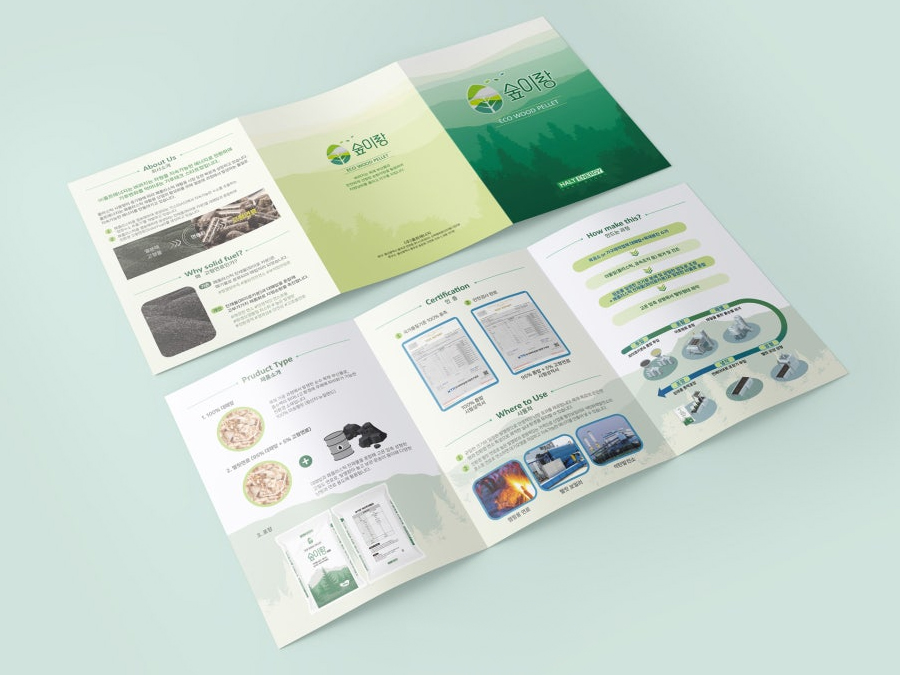 친환경 에너지 기업 홀트에너지는 목질 바이오매스 연료 ‘숲이랑’의 브랜드 인지도 제고와 글로벌 시장 대응을 위한 3단 리플릿 디자인 의뢰했다. 기존 홍보물은 기술 정보 전달에는 강점이 있었으나 해외 바이어 대상 커뮤니케이션과 시각적 완성도 측면에서 보완이 필요하였다. 부산·울산·경남 기반 디자인 전문회사 디로드는 공공·에너지 분야 홍보물 제작 경험을 바탕으로 국문·영문 병행 콘텐츠 기획과 브랜드 아이덴티티 정비를 중심으로 프로젝트를 수행했다.