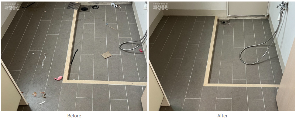 현장 컨디션 : 생활흔적, 먼지 및 곰팡이 축적, 욕실 오염