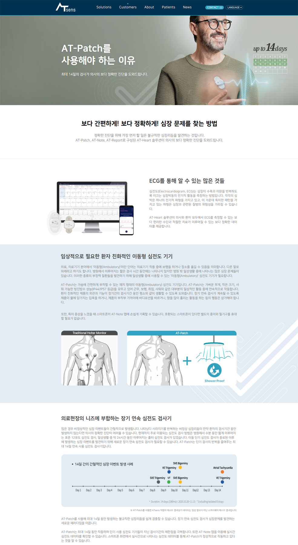 에이티센스(ATsens)는 국내 최초로 장기 연속 심전도 검사 솔루션을 개발한 글로벌 메디컬 테크 기업으로, 혁신적인 웨어러블 의료기기를 통해 디지털 헬스케어의 새로운 표준을 제시하는 곳이다.
