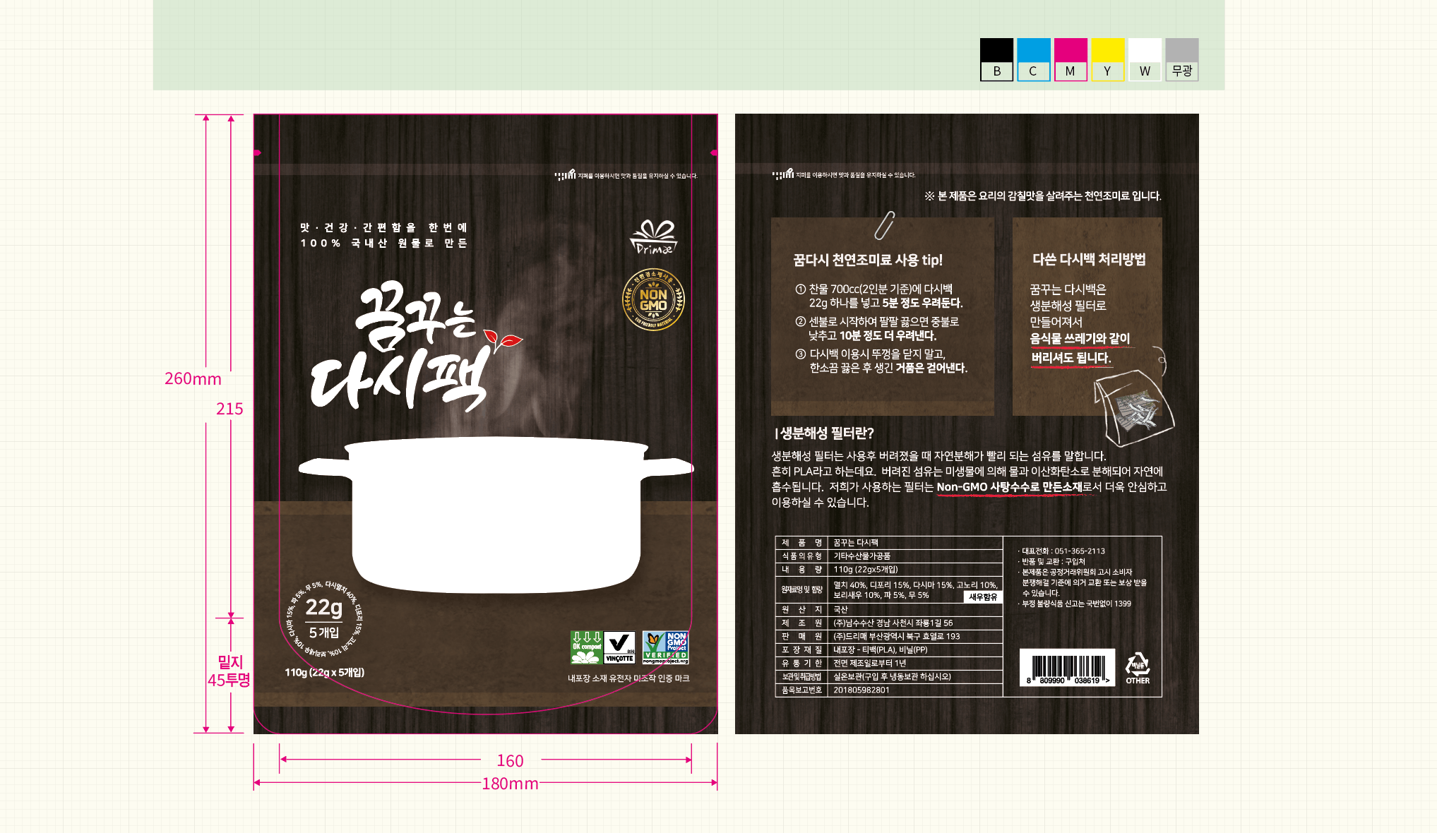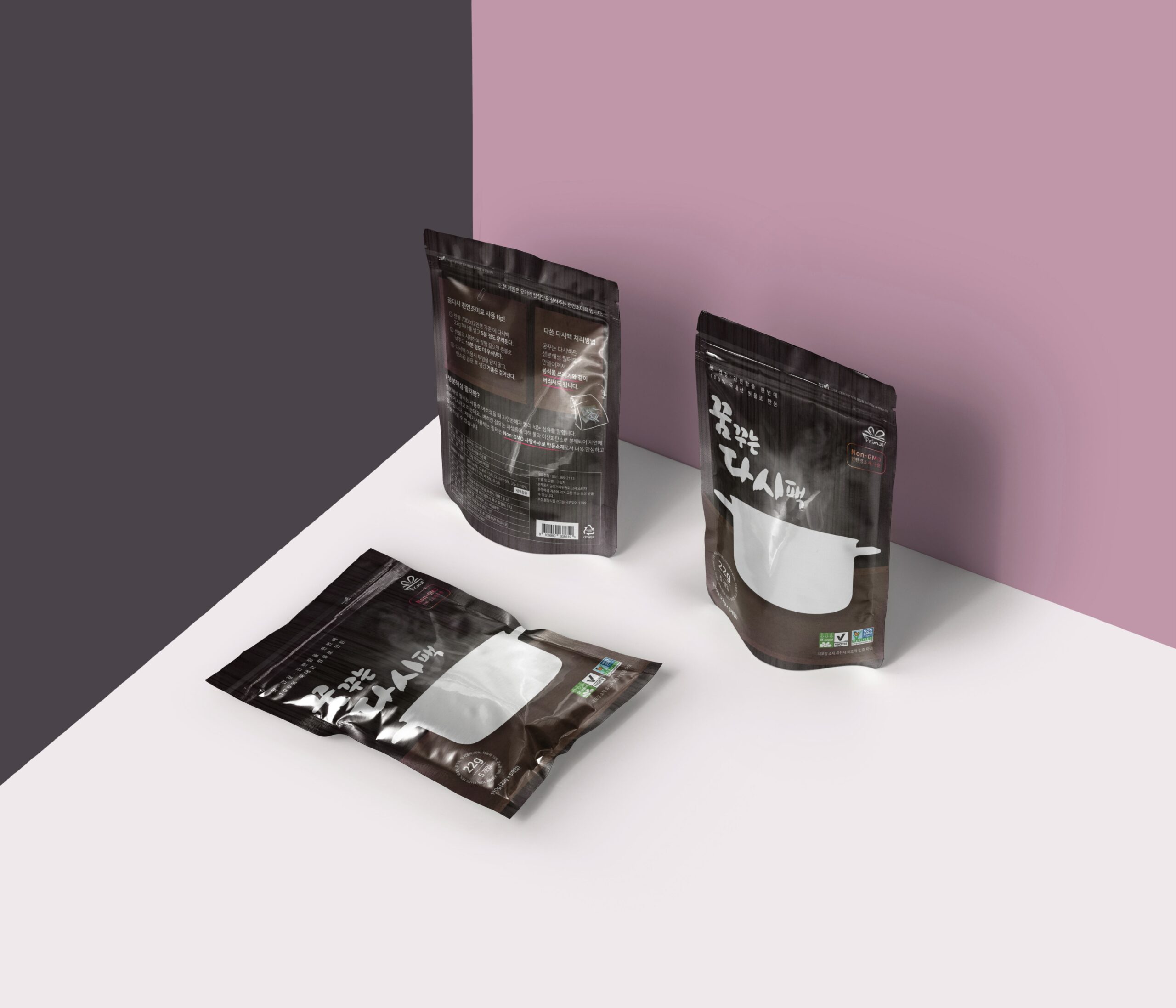간편한 요리를 위해 사용하는 다시팩을 시각적으로 전달하기 위해 냄비 형태의 일러스트를 추가하고 연기 위 ‘꿈꾸는 다시팩’이라는 문구를 올려 제품이 들어가기 전 느낌을 간접적으로 표현하였다.