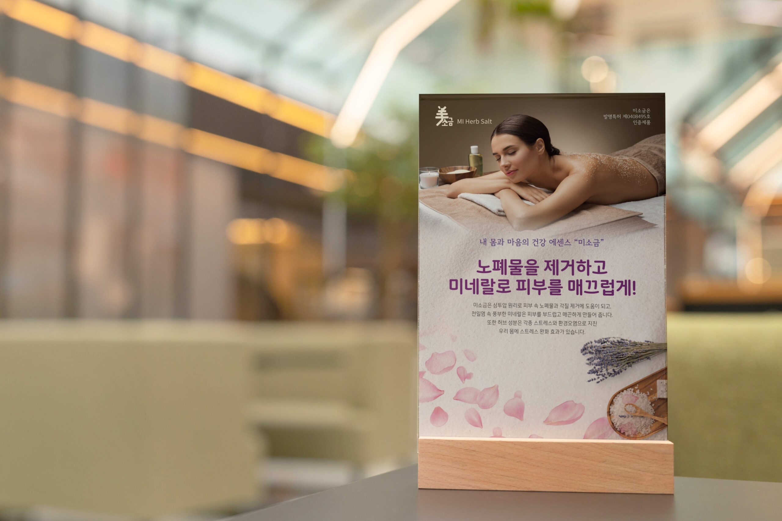 미용의 아름다울 ‘美(미)’를 직관적으로 드러낸 ‘美소금’ 브랜드 네임을 제안해 주었고, 비쥬얼적으로 가장 효과적으로 전달할 수 있는 시각적 표현으로 ‘美소금’ 대중화를 위해 소용량 용기와 업체 판매용 대용량용기 라벨을 제작하였다. 패키지 디자인 외 홍보물 제작도 함께 작업을 진행하였다.