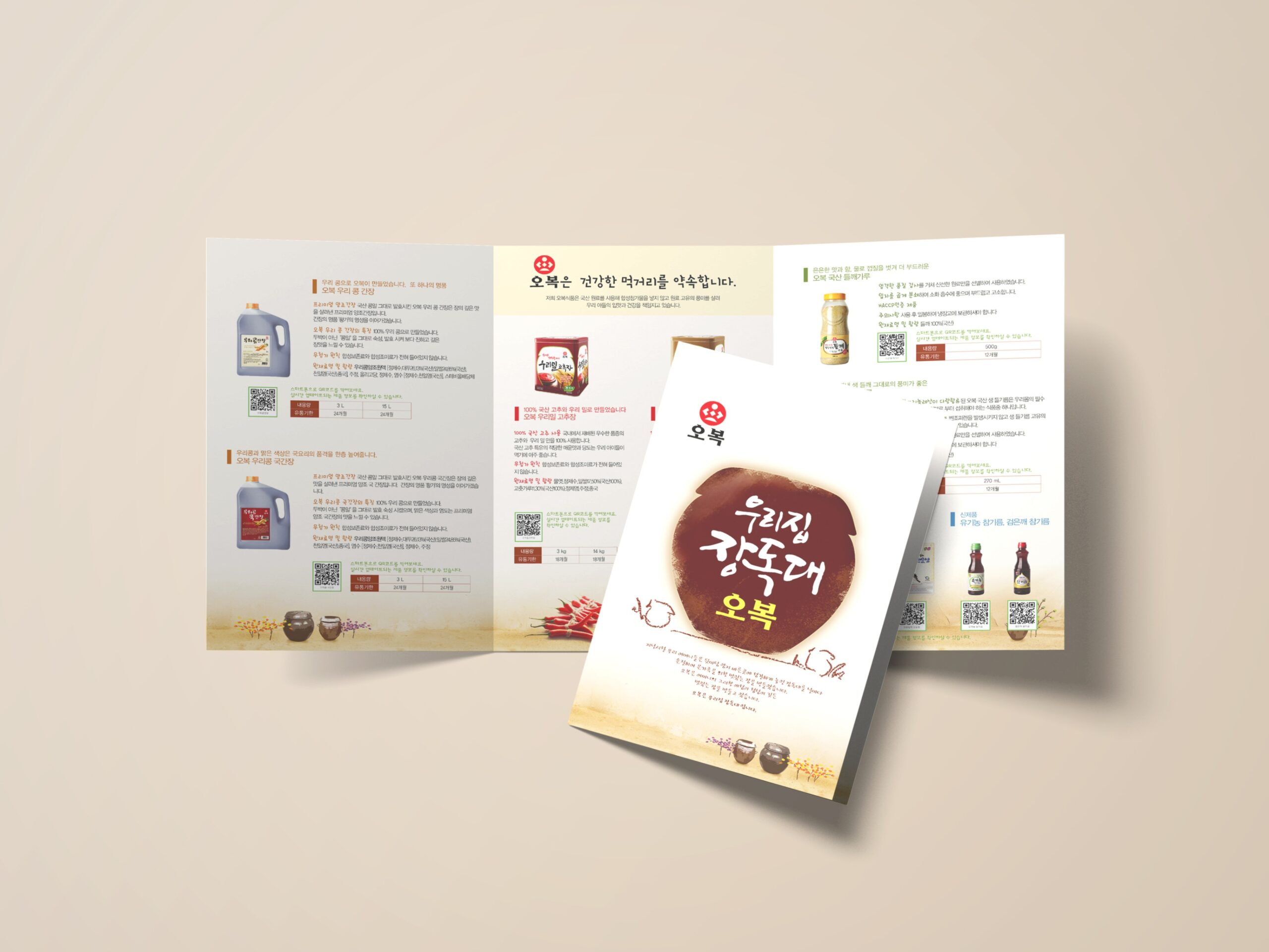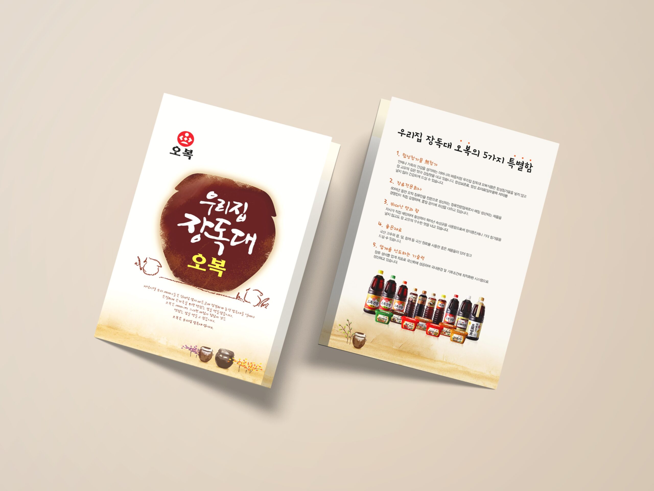 하지만 이를 통해 소비자와 소통하기에는 더 구체적인 대안이 필요하다고 생각했고, 한식에 있어 꼭 필요한 장을 통해 우리 가정의 건강한 식문화를 전달하겠다는 의미를 담아 ‘우리집 장독대 오복’이라는 슬로건을 개발하였다. 슬로건과 함께 학술대회 리플릿과 제품안내 바인더도 제작하여 소비자와 함께하는 브랜드 이미지를 구축하였다.