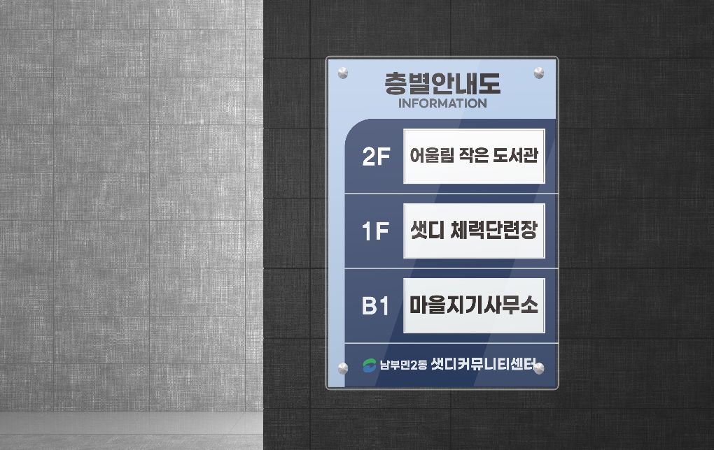 부산 서구 창조도시과 안내판 제작과 설치를 진행하였다. • • • • 층별 안내도와 계단 주의 표지판을 제작설치