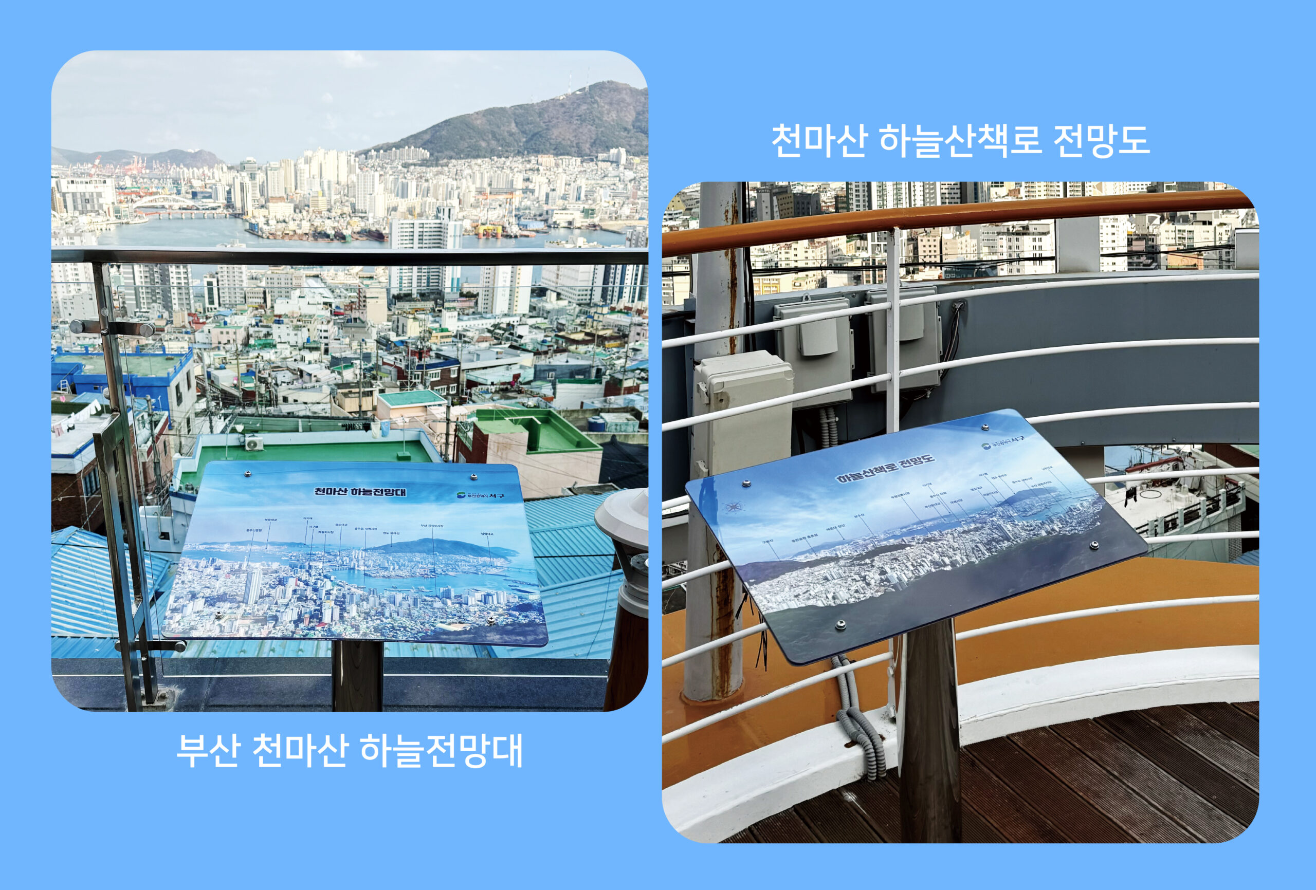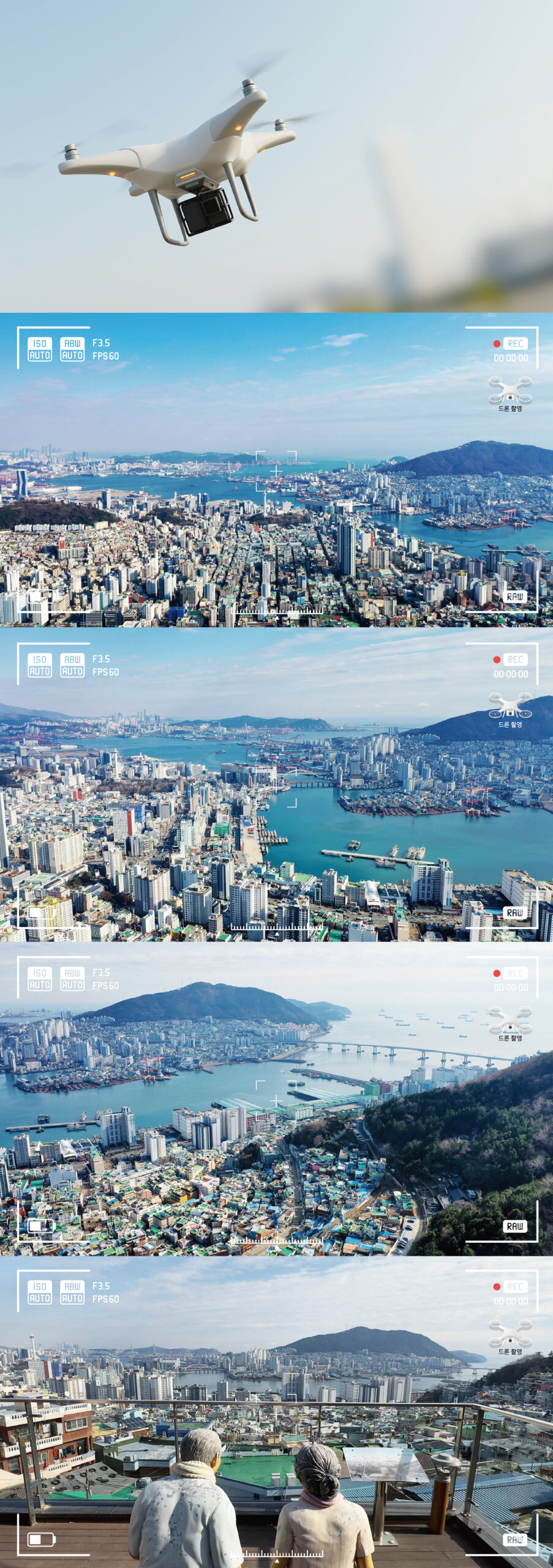 부산 서구 천마산 전망대 전망도 • • • • 영화 ‘국제시장’에서 주인공이 지난 세월을 회상하는 마지막 장면을 촬영한 천마산 하늘전망대의 전망도를 제작하였다. 드론촬영을 통해 부산의 아름다운 풍경을 담았다.