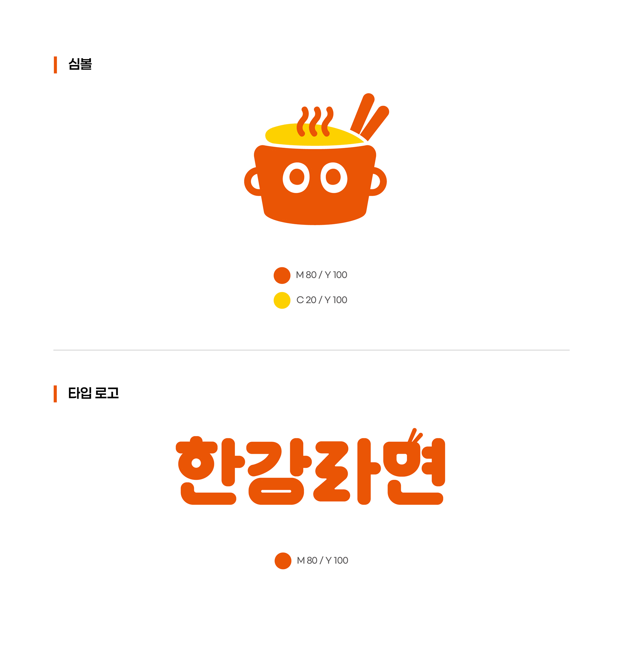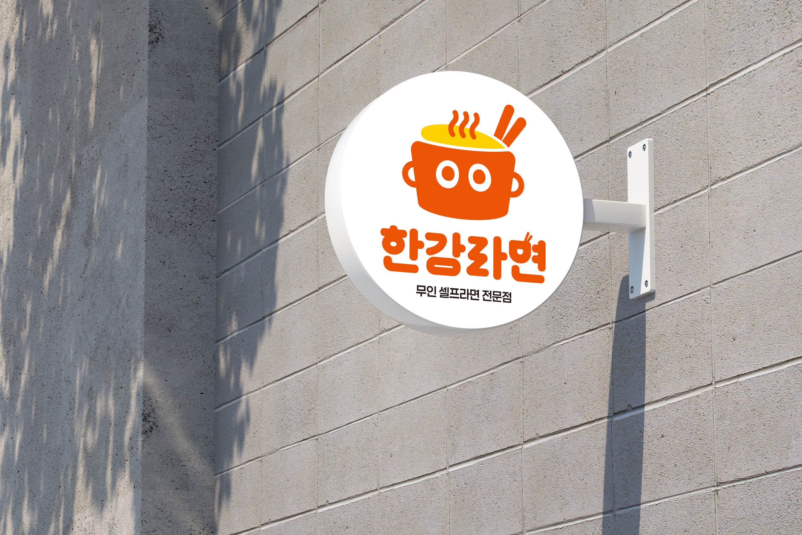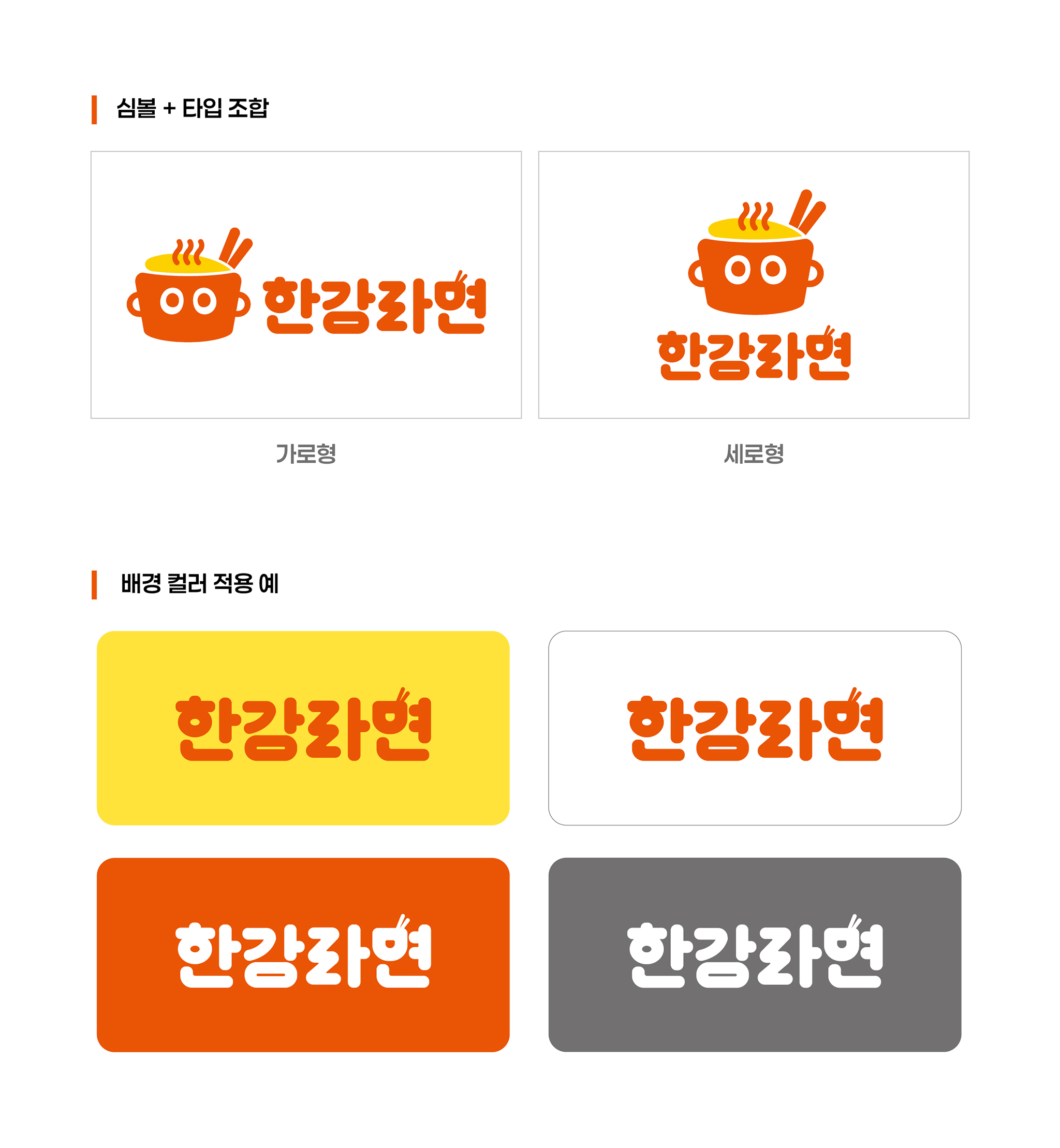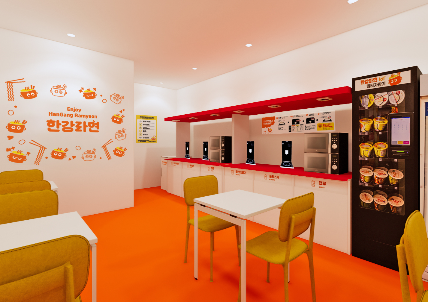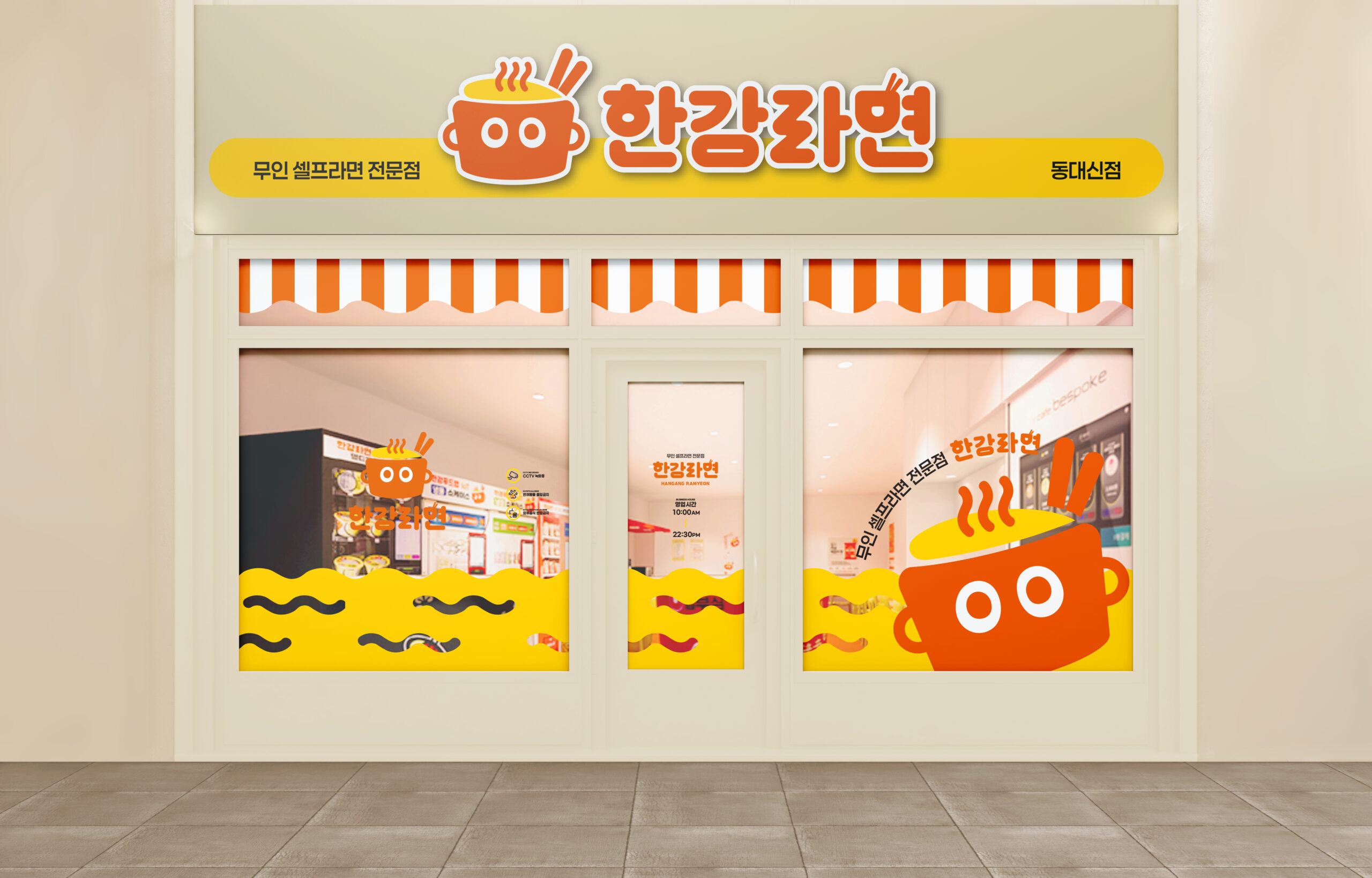 무인라면카페 한강라면 BI, 매장 인테리어, 라면 용기, 로고 디자인