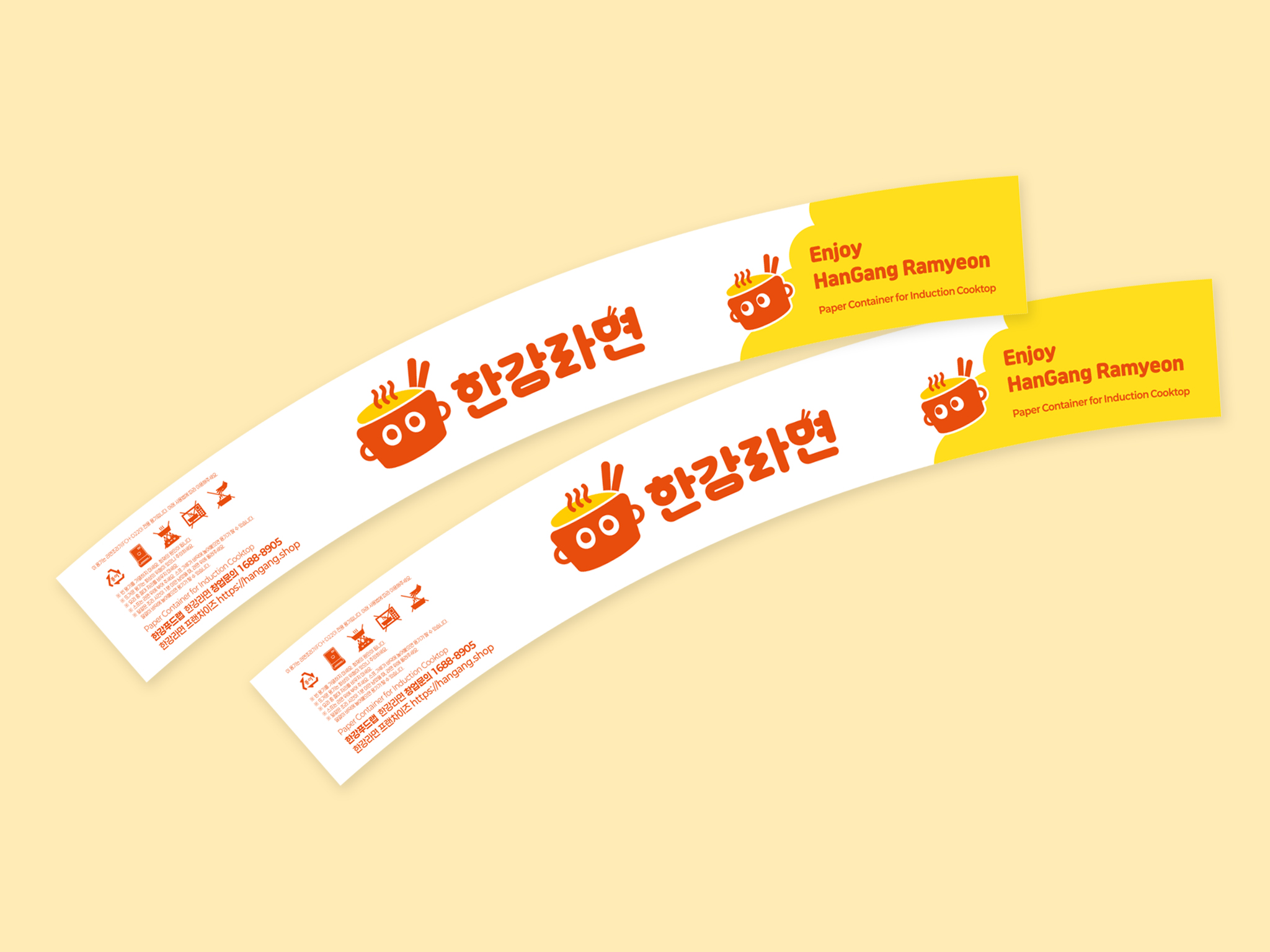 라면을 상징하는 캐릭터형 심볼과 로고를 제작하여 브랜드 아이덴티티를 완성했다. 또한 매장 내외부 인테리어 가이드와 라면 용기 디자인을 비롯한 다양한 어플리케이션을 제작해, 점주들이 통일성 있는 브랜드 이미지를 바탕으로 안정적으로 운영할 수 있도록 지원하였다. 이번 ‘한강라면’ 브랜딩은 개별 점주와 기업이 함께 성장할 수 있는 토대를 마련했다는 점에서 큰 의의를 가진다.
