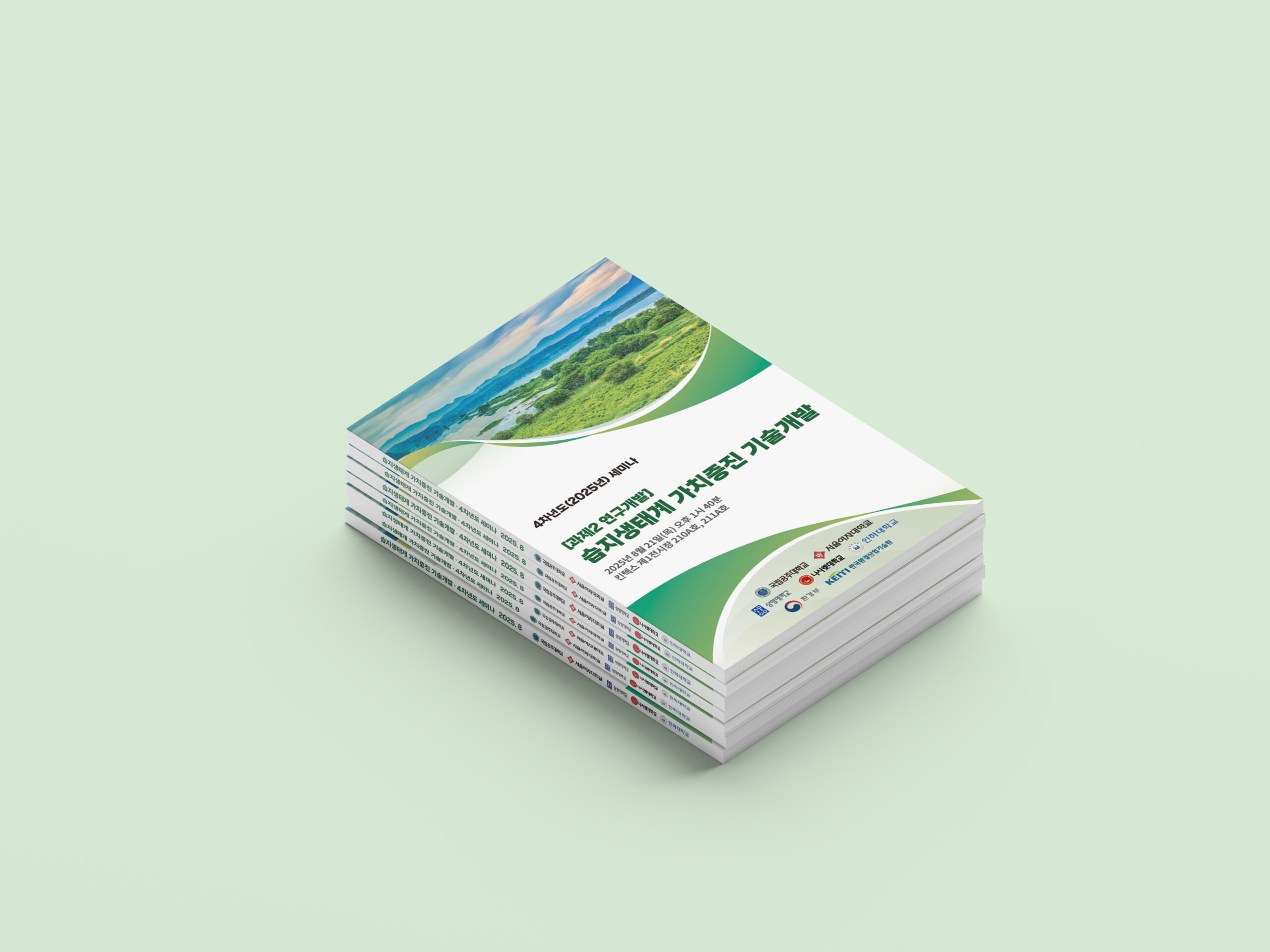 습지 생태계 연구와 보전을 중심으로 활동하는 학회의 성격을 반영해, 디로드는 초록집 4종을 비롯한 현수막, 패널 명패, 종이명찰 등을 통합적으로 디자인하였다. 이번 작업은 학회 행사에서 즉시 활용 가능하도록 실용성과 가독성을 중점으로 두고 제작하였다.