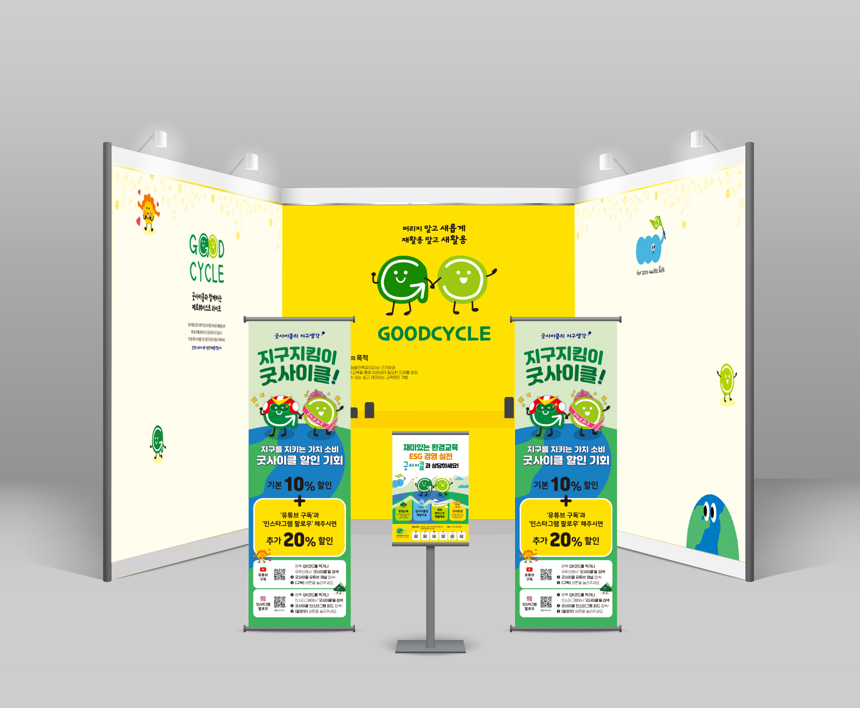 2023년 메가쇼에 참석한 (주)굿사이클 부스 • • • • 업사이클링 체험키트 / 청바지업사이클 / DIY키트꾸러미 등 환경을 지키는 다양한 리사이클 제품들을 제작하는 굿사이클 2023년 메가쇼 부스와 박람회 관련 모든 제작물에 참여하였다.