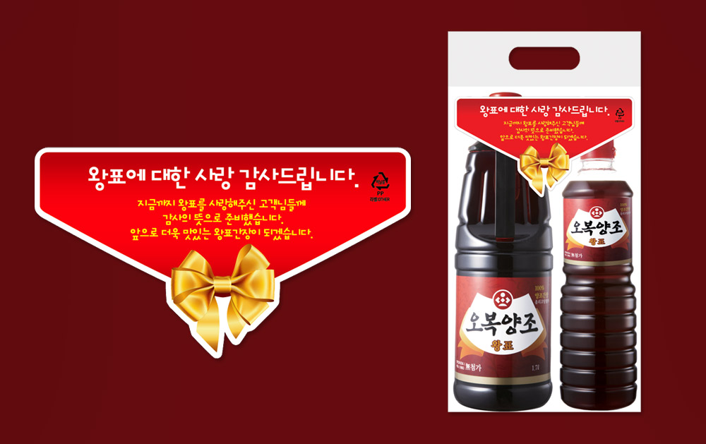 오복식품 – Plan POP • • • • 할인점 전담행사에 따른 증정품 인팩작업으로 앤드매대 본매대에 진열 판매할 제품의 포장작업에 필요한 폴리백과 시선을 끌고 행사의 목적을 전할 수 있는 라벨을 제작하였다.